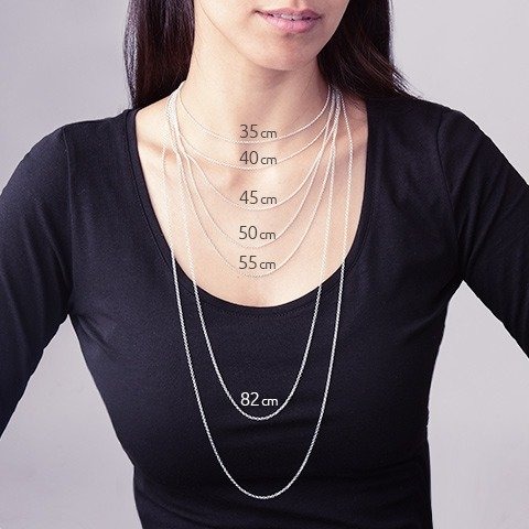 Algunas medidas de collares son: 35cm, 40cm, 45cm, 50cm, 55cm, 60cm o mas y puedes utilizarlo según tu escote preferido